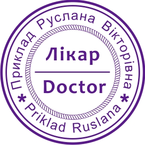Т.к. сейчас государство Украина не прописало требование к большинству образцов печатей, то Вы можете нанести надпись на украинском, английском и русском языках. Необходимый Вам текст, нужно написать в поле «комментарий к заказу», оно появится после того, как нажмете кнопку Купить, а затем «Оформить заказ». Если оформление печати врача и язык, на котором она будет написана, для Вас не принципиально, тогда мы рекомендуем придерживаться нашего образца и текст оставлять на английском и украинском языках.