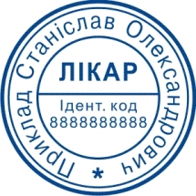 В большинстве случаев, клише печати врача с идентификационным кодом изготавливается диаметром от 30-41 мм. Сейчас закон обязал некоторых врачей писать свой код на справках. Поэтому можно изготовить печать с идентификационным кодом, что бы не писать его вручную.