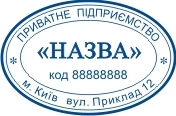 Овальный штамп 45x30 мм. довольно часто используется, как предприятиями, так и предпринимателями. Обычно в нем размещается текст рекламного характера.