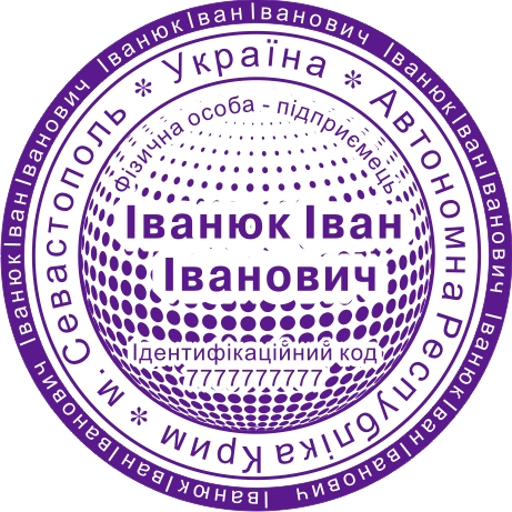 Текст можно написать на русском, украинском и английском языках. Если Вам понравилось оформление печати предпринимателя, но текст совсем не подходит - тогда напишите свой текст в комментариях к заказу. Мы его разместим и вышлем Вам эскиз с новым текстом на проверку (по электронной почте).