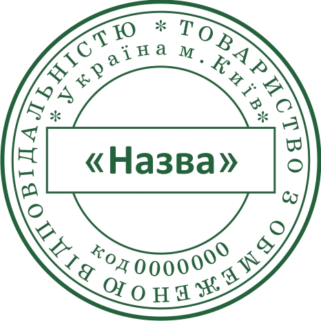 Текст можно написать на русском, украинском и английском языках. Если Вам понравилось оформление печати "Общество с ограниченной ответственностью", но текст совсем не подходит - тогда напишите свой текст в комментариях к заказу. Мы его разместим и вышлем Вам эскиз с новым текстом на проверку (по электронной почте).