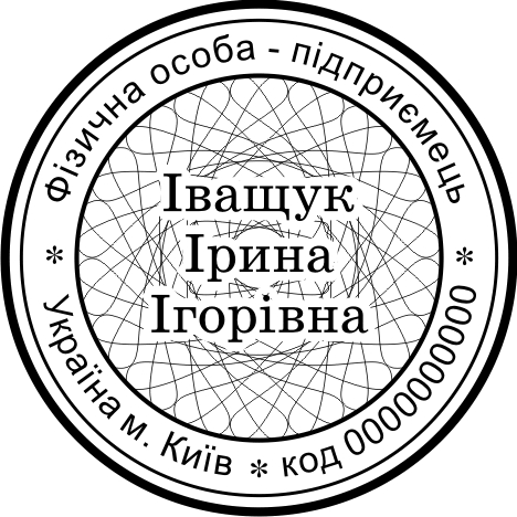 Текст можно написать на русском, украинском и английском языках. Если Вам понравилось оформление печати частного предпринимателя, но текст совсем не подходит - тогда напишите свой текст в комментариях к заказу. Мы его разместим и вышлем Вам эскиз с новым текстом на проверку (по электронной почте).