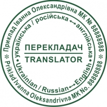 Т.к. сейчас государство Украина не прописало требование к большинству образцов, то Вы можете нанести надпись на украинском, английском и русском языках. Необходимый Вам текст, нужно написать в поле «комментарий к заказу», оно появится после того, как нажмете кнопку Купить, а затем «Оформить заказ». Если оформление штампа переводчика и язык, на котором она будет написана, для Вас не принципиально, тогда мы рекомендуем придерживаться нашего образца и текст оставлять на украинском языке.