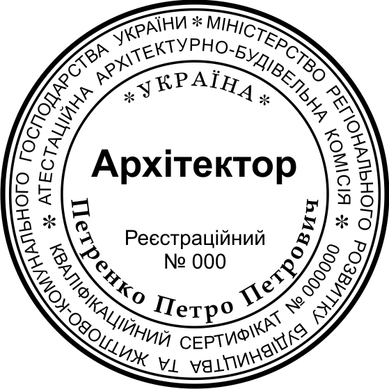 Текст можно написать на русском, украинском и английском языках. Если Вам понравилось оформление печати архитектора, но текст совсем не подходит - тогда напишите свой текст в комментариях к заказу. Мы его разместим и вышлем Вам эскиз с новым текстом на проверку (по электронной почте).