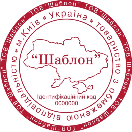 Текст можно написать на русском, украинском и английском языках. Если Вам понравилось оформление печати предприятия с контуром Украины, но текст совсем не подходит - тогда напишите свой текст в комментариях к заказу. Мы его разместим и вышлем Вам эскиз с новым текстом на проверку (по электронной почте).