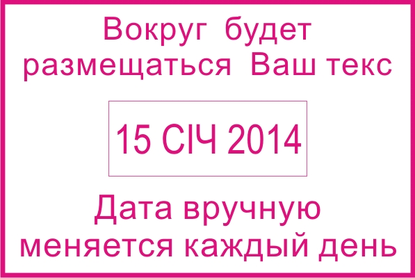 Если Вы сомневаетесь в правильности выбора размера штампа - укажите это в комментариях к заказу. Наши дизайнеры подберут нужную величину в зависимости от объема текста, который нужно разместить. Для данного образца использовалась бордюрная линия толщиной: 1 мм. Вы можете сами указать нужную толщину линии для будущего изделия.