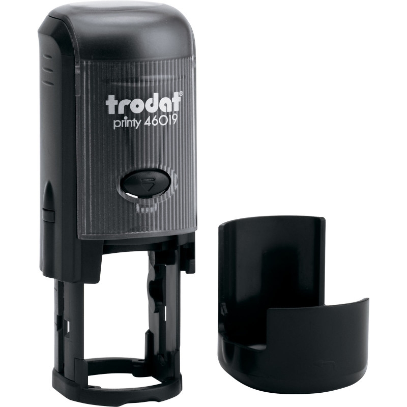 Автоматична оснастка для круглої печатки Trodat діаметром 19 мм. відмінно підійде, якщо потрібно домогтися чіткого і рівномірного відбитка. Оснащення виготовляється з міцного пластику. Використовується для кліше діаметром до 19 мм. Вгорі є оглядове віконце, в якому розміщується приклад відбитка Вашої печатки. У комплекті йде захисна кришка, яка оберігає кліше від пошкодження і вже заправлена чорнильна подушечка, яку надалі можна перезаправляти фарбами на водній основі.